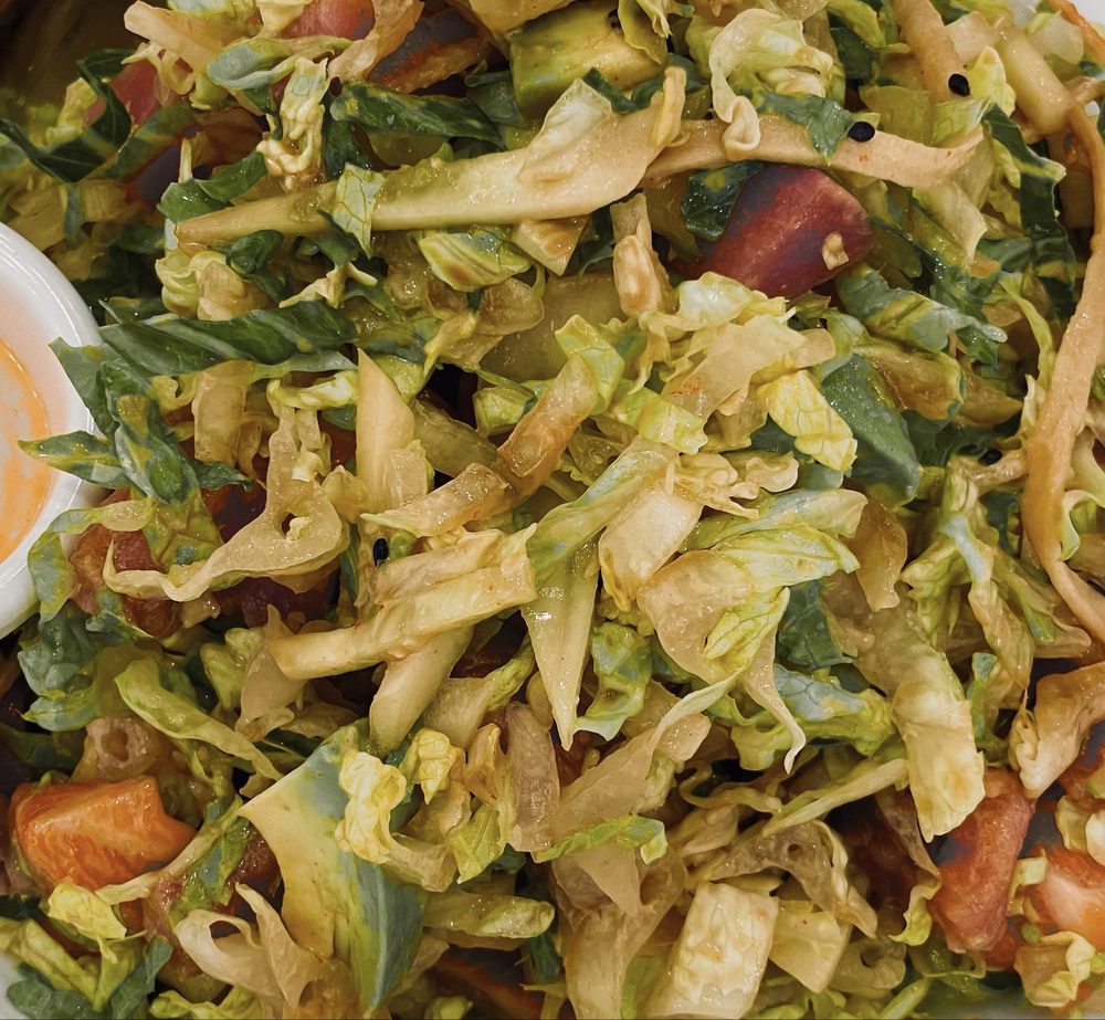 Raw Tuna, Salmon and Yellowtail (hamachi) served over Iceberg lettuce And julienned cucumber, nori, carrots and avocado Seasoned with soy vinaigrette
